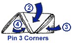 Pin the three tips in the middle, leaving a big hole on the top and two smaller holes on the bottom on opposite sides. Always keep your hand between the skin and the diaper to avoid sticking the baby.