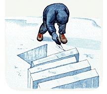 Step 1. Cut blocks from dry, hard, hard snow, using a snow saw or large knife. Each block should be about 3 ft. (1m) long, 15 in. (40cm) high, and 8 in. (20cm) deep.